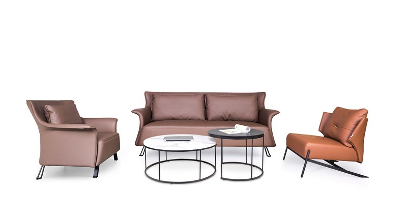 1.面料:采用优质进口保时捷纳西皮+麻绒布。2.结构:进口实木框架。3.弹簧: 优质碳素钢蛇形弹簧。4.填充物:座垫45°高回弹海绵 ,靠包采用科技羽绒加纳米回弹颗粒填充。靠背/扶手:35°海绵软硬适中。5.脚架:加厚钢板电脑切割,冷轧一次成型,表面黑色喷砂防锈防氧化处理.