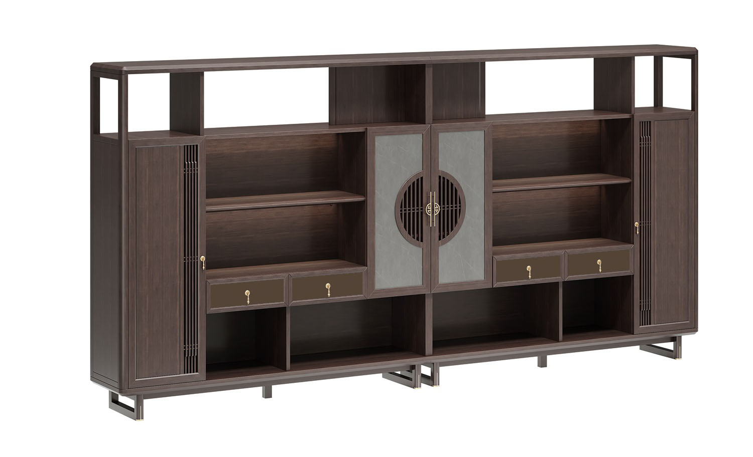 鸿泰系列是一款新中式风格的办公家具,设计灵感源于中式传统装饰纹样“回”字形,因其形式回环反复,延绵不断,在民间有“富贵不断头”的说法,有连绵不断、吉利长久的吉祥寓意,在造型上主要采用硬朗简洁的直线条,温润的乌金木与质朴的岩板相结合,刚柔并济,时尚大方,既使得中式家具古典、质朴的内涵显现,又符合现代办公追求的时尚感、实用性。